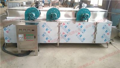 多層烘干機又稱為網帶式烘干機,它是將所要處理的物料通過輸送帶通過一個或幾個加熱單元組成的通道,每個加熱單元均配有空氣加熱和循環系統,每一個通道有一個或幾個排濕系統,在輸送帶通過時,熱空氣從上往下或從下往上通過輸送帶上的物料,從而使物料能均勻干燥。利用不銹鋼網帶作為傳輸帶運載物料進行連續烘干的干燥設備,適宜流水作業。由于傳輸帶是網狀,所以對烘干規則或不規則各種食品、蔬菜等為適宜。本機可以和其他設備配套使用。也可以單獨使用。該設備可廣泛用于食品、化工等行業,而且是食品和蔬菜進行干燥加工的理想設備。![]() |