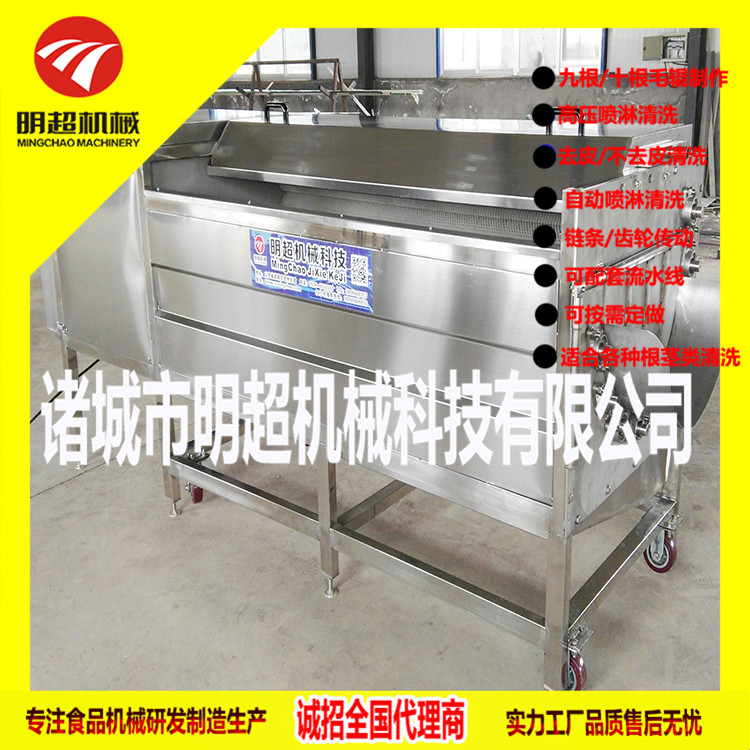 蔬菜分為根莖類和葉菜類,那么在這些根莖蔬菜和葉類蔬菜里面,一種蔬菜清洗機(jī)能全部清洗嗎?這是很多前來(lái)咨詢客戶的心聲,都想讓設(shè)備做到完好,什么蔬菜都能清洗,這個(gè)我想大家心里都有數(shù),有這個(gè)想法是好的,當(dāng)然,在這里,也要看客戶的需求,晨熙機(jī)械可以根據(jù)客戶的要求,為您單獨(dú)定制清洗設(shè)備,那么在這里就介紹一下根莖類的蔬菜清洗機(jī),顧名思義根莖類的蔬菜就是針對(duì)土豆、紅薯、蓮藕、山藥、中藥材、胡蘿卜、番薯、芋頭等等進(jìn)行去皮或者不去皮清洗,這些要求都是根據(jù)客戶的需求生產(chǎn)的,根莖類去皮清洗的話,需要用同一種設(shè)備,但是毛輥的硬度要高,能將根莖類的蔬菜皮磨掉,再通過(guò)高壓噴淋管道進(jìn)行清洗,如果只是單純的清洗根莖類的,需要看物料上面的泥土是新鮮的還是堅(jiān)硬的,如果是堅(jiān)硬的,需要在根莖類毛輥清洗機(jī)前面加上浸泡機(jī),通過(guò)浸泡將根莖類蔬菜上面的泥土松軟,再通過(guò)網(wǎng)帶輸送到毛輥清洗機(jī)上面,這樣毛輥去皮清洗機(jī)就相對(duì)于簡(jiǎn)單了。后續(xù)可配套提升機(jī)→風(fēng)干瀝水→切絲塊機(jī)→漂燙機(jī)→冷卻機(jī)→脫水→烘干或者包裝