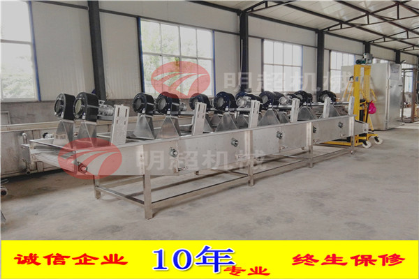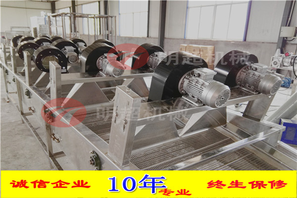 6.通過風刀將自然風轉換成強流風。風干機輸送網帶設計為多次翻轉輸送,確保產品兩面除水效果,風干機吹干效果良好 設備采用變頻輸送,速度可調輸送平穩。