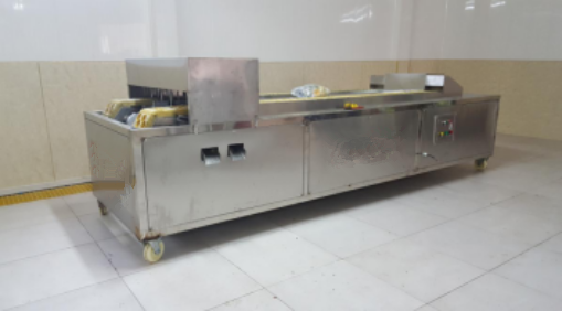 開始將沙果投入到設備里面浸泡,浸泡1小時,然后通過網帶輸送到殺青機里面,形成流水線。整機采用sus304不銹鋼制作,電機和鼓風機除外。網帶速度可調,水可循環利用
