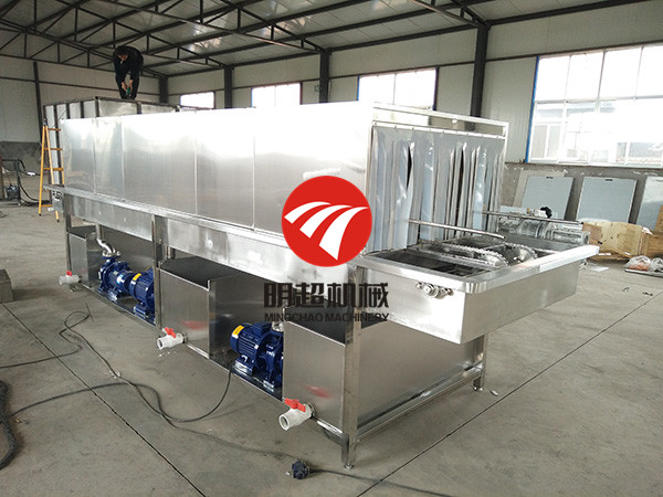 近年來塑料周轉筐活磨具已廣泛應用于各行各業,其中以食品行業與機械零配件行業為主。其清洗往往需要投入大量人工,提高生產成本。諸城晨熙食品機械研發出洗筐機設備,這一設備的出現為企業節省了成本,提高了效率,下面我們來說一下設備的周轉筐清洗機工藝介紹工作原理: