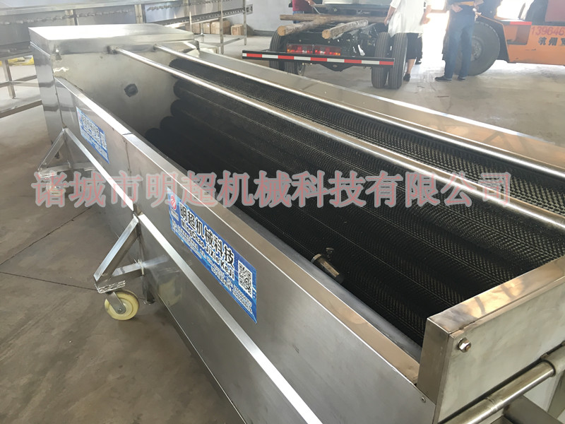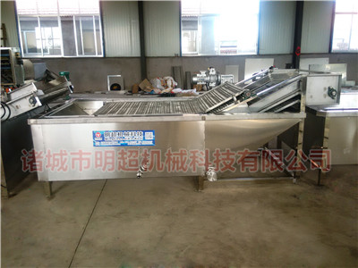 氣泡清洗機,通過高壓氣泡水浴清洗分離雜質,使用濾網過濾泡沫及漂浮物,清洗時氣泡在設備中翻滾,并帶動物料翻滾,使物料的得到清洗,在出水口處設有高壓噴淋,讓蔬菜進行二次清洗,保證潔凈度。清洗效率高,實用性強并且可有效節約水資源。