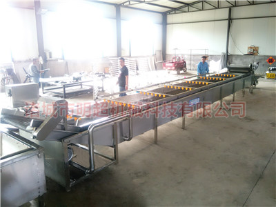 一般來說,根莖類作物凈菜加工流水線包括以下設備挑選輸送帶→提升機→加高去皮毛輥清洗機--氣泡清洗機→消毒殺菌清洗機→高壓噴淋清洗機---多功能蔬菜分切機→漂燙冷卻機→風干瀝水機---傳送帶等設備組成,具體組成設備根據客戶工藝來訂制。